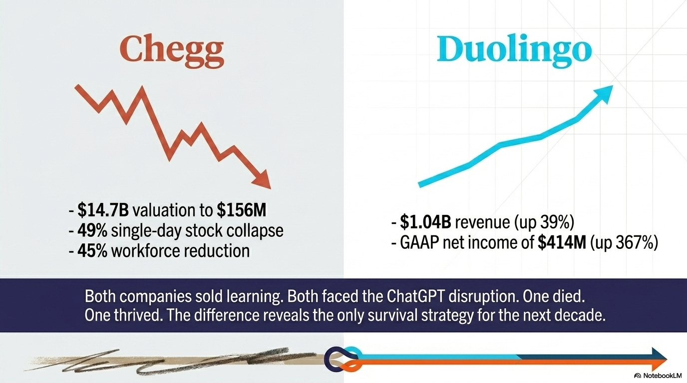 Both companies sold learning. Both faced the same AI disruption. One died. One thrived.