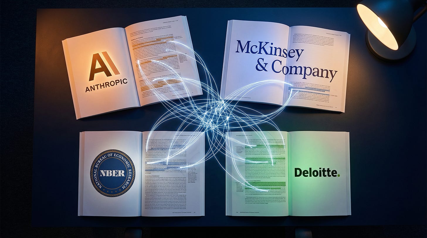 I’ve been reading these reports as they dropped — Anthropic, McKinsey, the NBER, Deloitte.